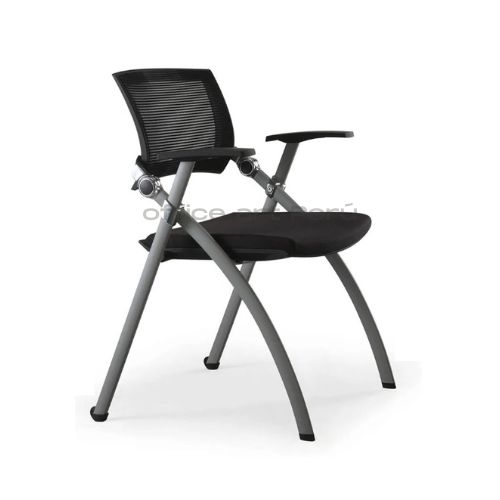 - Asiento tapizado en tela malla abatible con espuma inyectada en PU.